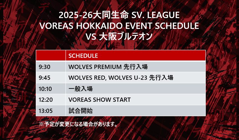 大同生命 SV.LEAGUE VOREAS HOKKAIDO 10th HOME GAME