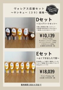 なお、ヴォレアス応援として販売しております蜂蜜セットにつきましても、